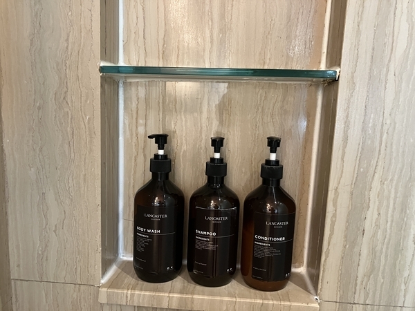出発するとすぐに車窓からランカスターホテルが見えました。手前の屋上にプールがあるはず。お世話になりました。