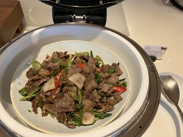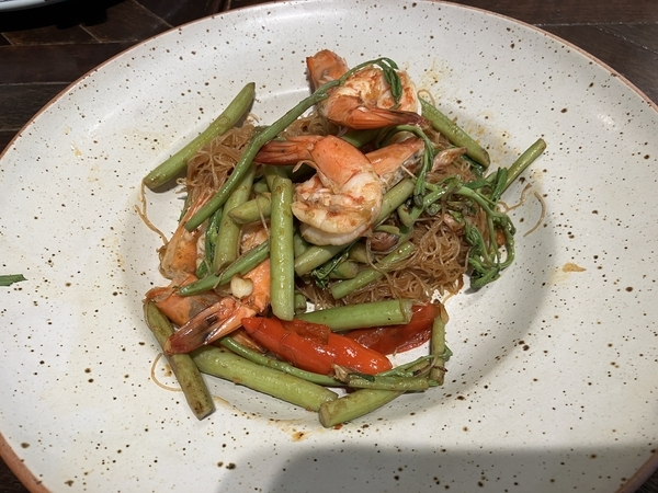 海老とオジギソウのビーフンらしい。water mimosaというのは初めて食べたと思うのですが、空心菜に近いかな。
