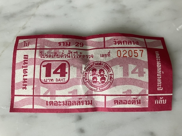 前日に降りたPratunam駅から乗り込み、Golden Mount Lineで西へ向かいます。短い距離なので12THB(60円)。