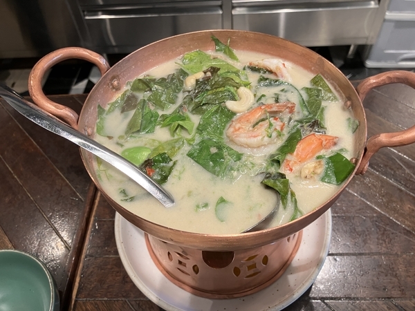 Melinjo leaves in coconut milk soup with shrimps 410THB(2,050円)