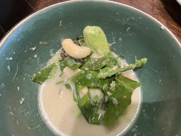 食べている最中のもので申し訳ないのですが、具材はかなりたくさん入っていて、特に気に入ったのが緑色の豆か種のようなもの。歯ごたえがあって、でも癖はない。メリンジョの葉もあっさりしているけど味わい深くて柔らかく、もっと食べてみたかったわ。