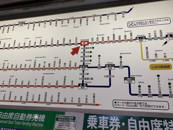松本駅からは、安曇野のほか上高地へも行ったことがあります。ここから長野へ足を延ばしたことも。