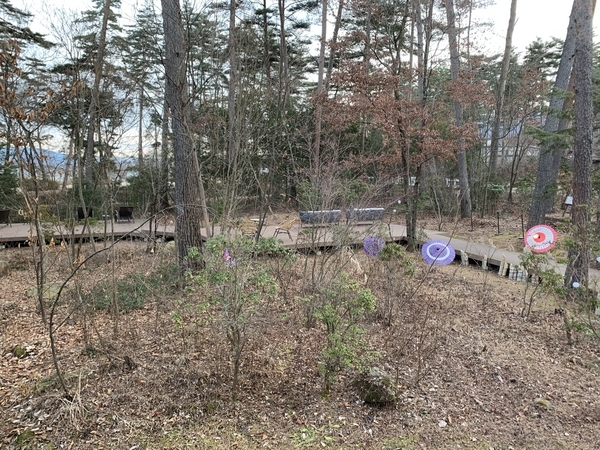 ハンモックのほかにも椅子が置いてあります。休暇村から歩いてすぐのところに農産物の直売所や日帰り入浴施設などもあり、便利な場所です。ただ、直売所は早い時間に閉まっていたし、翌朝の開店時刻も送迎バスの時間に重なってしまって行けなかったのは残念だったけど。