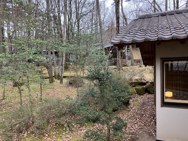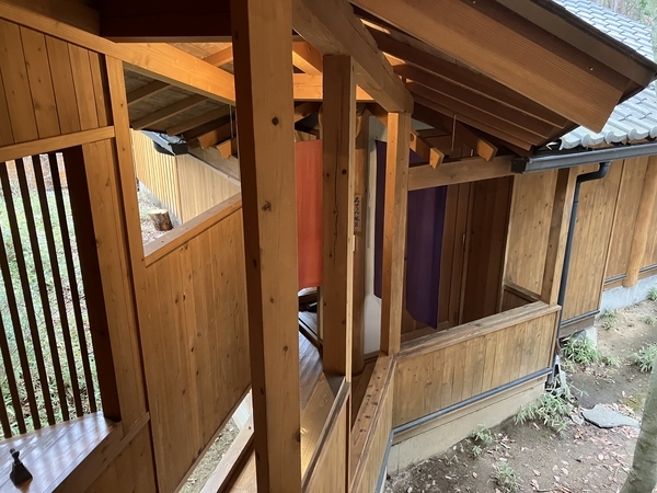 家族風呂を後にして、さらに奥にある露天風呂へ向かいます。屋根はあるものの雨風は吹き込むので、前回は本当に寒かったです。しかも雪も積もっていたし。
