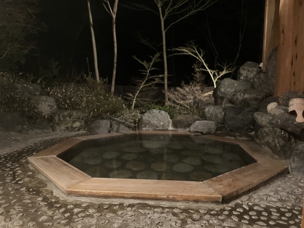 真っ暗だけど、星空も見えてこの露天風呂は私のお気に入りです。