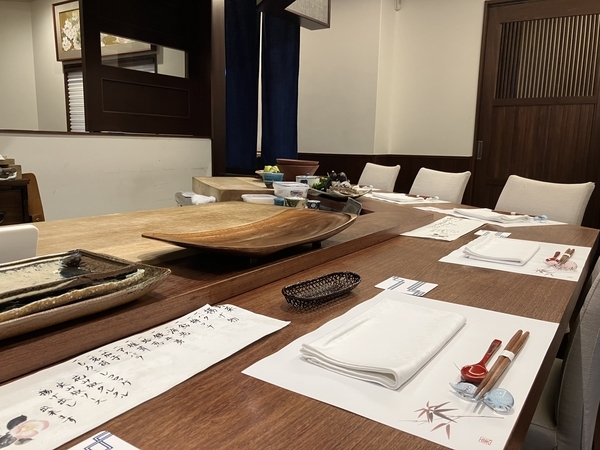 セッティングは8名分されていますが、18時からスタートは私たちだけ。いつものコース料理とは違うアラカルト仕様です。