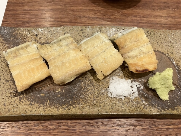 塩でも醤油でもOKでしたが、醤油の方がよりプロの味を感じられそうだったのでチョイスしました。関西人の夏には必須の鱧を、こんなに美味しくいただけて至福の時間です。