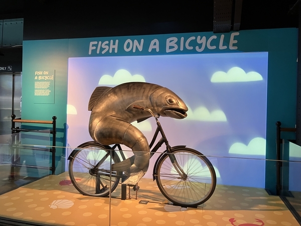 これなんて、魚の尾っぽで自転車を漕いでいる動くバージョンで、Tシャツにもなっていましたが、なんか笑えない。