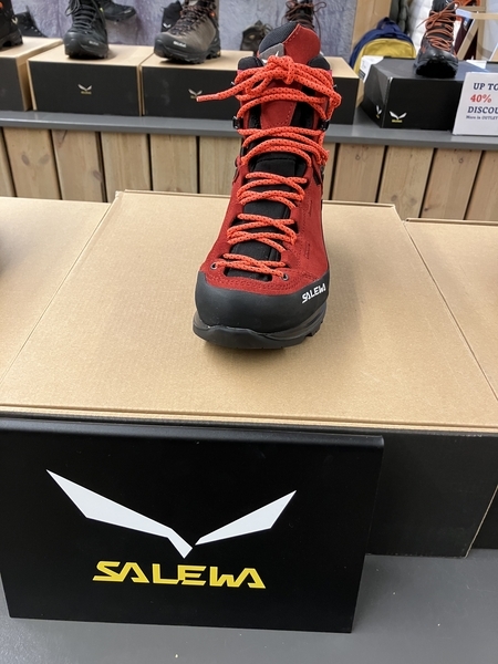 かっこよかった登山靴。ビビッドな赤が印象的。ディスカウントしていたから欲しかったけど、サイズを出してもらうのも面倒でパスしてしまいました。ちょっと残念。SALEWA(サレワ)は1935年ミュンヘンで起業したあとイタリアへ拠点を移したアウトドアブランドです。イタリアンテイストが入った分、ファッショナブル。