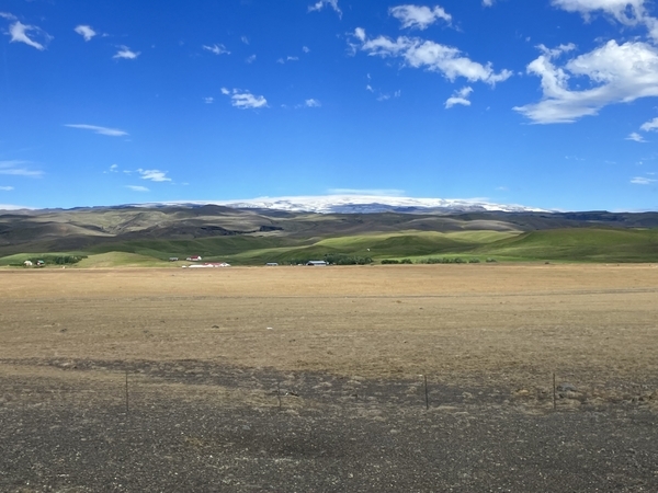 牧歌的な風景。アイスランドでいう農業は放牧や牧草栽培ですが、その特徴がよく見られる地域です。特にアイスランド人はラム肉が好きで、羊の多くは食用になります。アイスランド全体で、冬には45万頭、夏には100万頭の羊がいます。