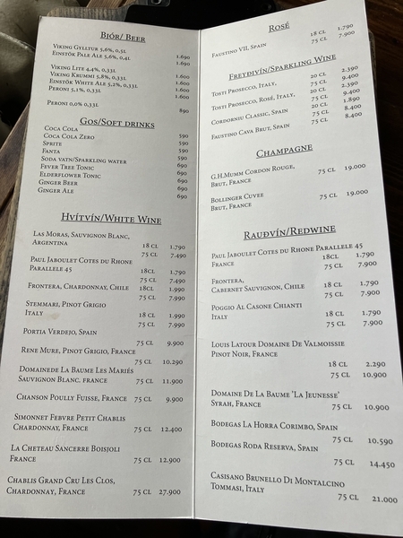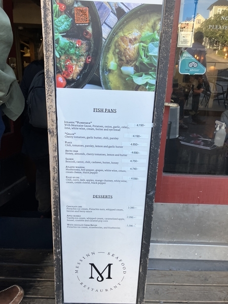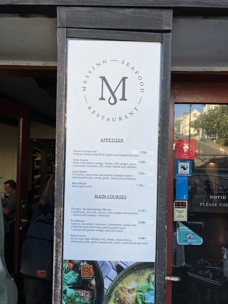 -Arctic char, tiger shrimp, cod cream, cream cheese, white wine, leek, garlic, musshroom, carrot, garlic bread and salat-4490ISK(5,030円)