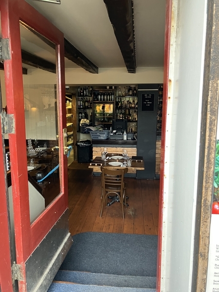 通りから少し下がった半地下に位置しています。そういえば、半地下の家を多く見たけれど、中からはこんなふうに見えるのか。より明かりが入りやすいのかな。