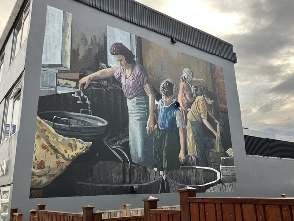 レイキャビクはストリートアートも多いですが、これは食事を作っているのではないですよね。染料でしょうか。子どもたちも手伝っているところが特徴的。