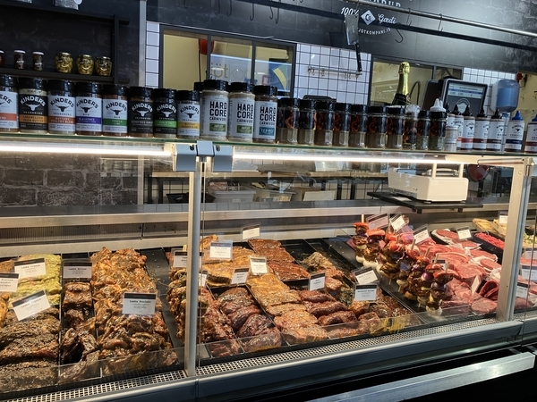 ラム肉や豚肉など。様々なソースやオリーブオイルなどが売っていました。なかなか魅力的なお店。地元民らしき人が買いに来ていました。