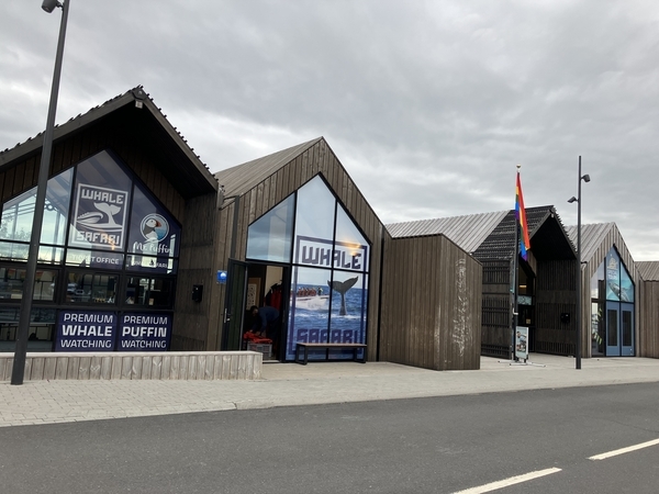 ホエールウォッチングのツアー会社が並んでいます。反対側にはレストランも建ち並んでいました。