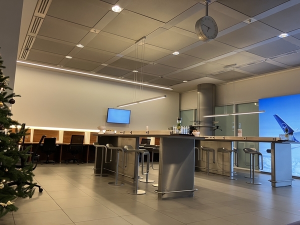 ミュンヘン空港、ルフトハンザ航空のセネターラウンジ。ビジネスラウンジよりちょこっと格上です。機能性の高いイメージがあるドイツらしいラウンジは、フランクフルト空港とも似通っています。