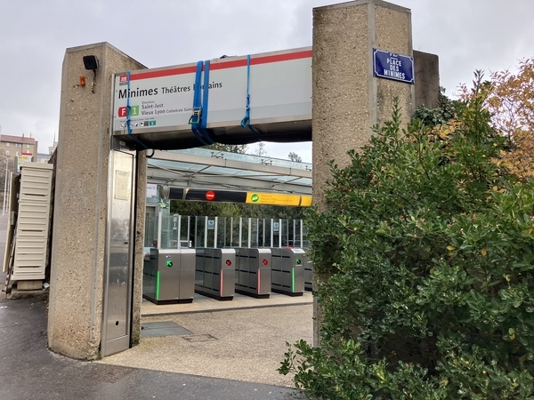 正面奥がケーブルカーを下ったところにあるVieux Lyon駅。ベルクール広場までは5,6分です。