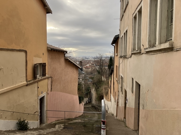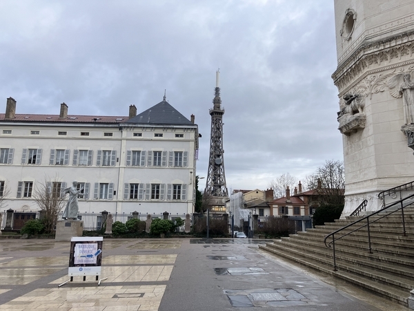 朝の散歩が続きます。ここからは世界遺産の建物を巡ります。そのひとつ、リヨン・ノートルダム大聖堂がフルヴィエールの丘の上に見えています。