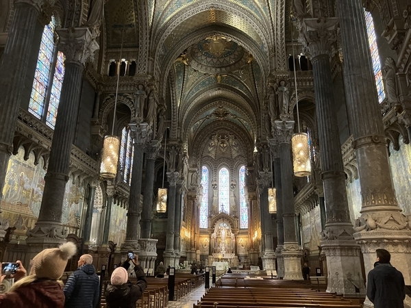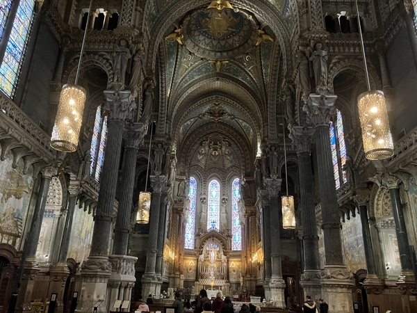 リヨン=ノートルダム大聖堂は聖母マリアに捧げられた聖堂で、ステンドグラスやモザイク画はフランスの歴史や聖母マリアの生涯を描いているそうです。