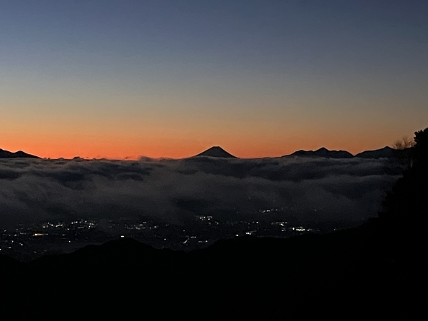 5:53 再び曙の中に浮かび上がる富士山を燕山荘の展望台から眺めます。