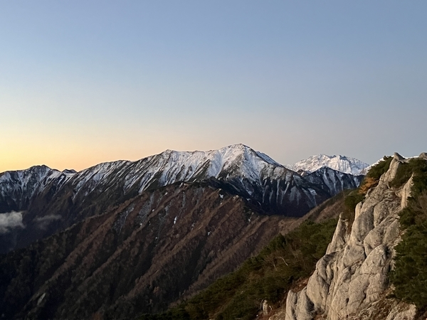 6:01 同じ場所から再び裏銀座の稜線。日没時とはグラデーションが逆で、これもまた美しい。