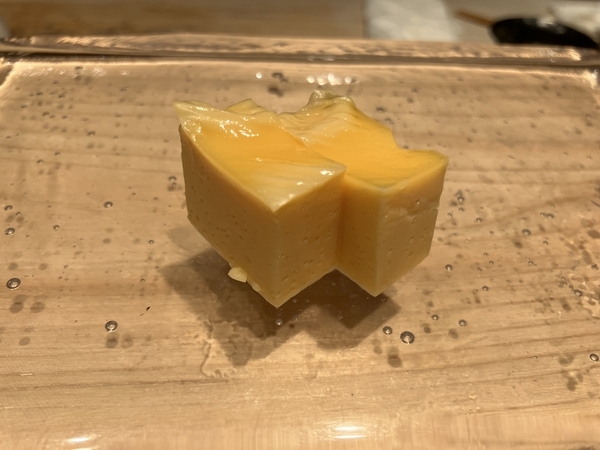 甘くてプリンのような味の玉子焼き。デザートの位置づけといってもいいつるりとした滑らかさで美味しかったです。