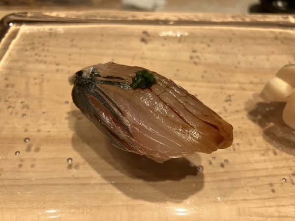 ここから握りのスタート。ガリはゴロリとしたタイプ。生姜に自信がなければこれはできないよね。