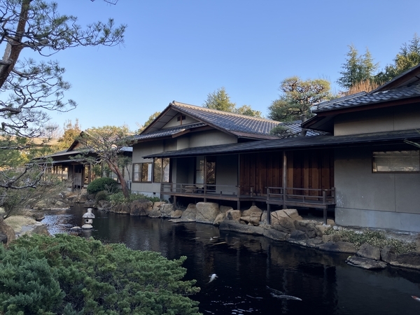 池に面する離れは3棟。真ん中が「九重」のはず。