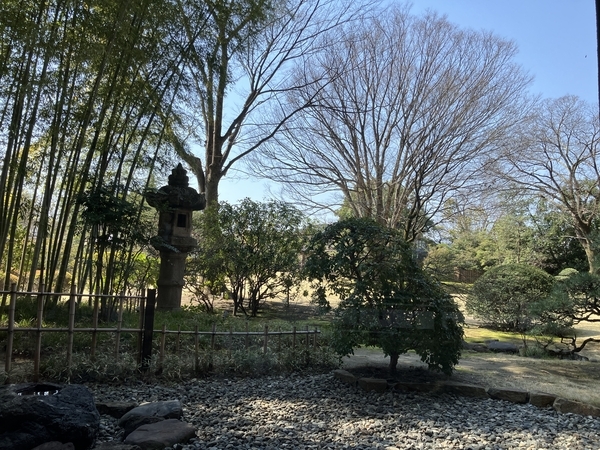 庭園に出てみました。高円宮殿下お手植えの栗、定宿だった作家山口瞳のエッセイの中の「花梨の庭」に登場した花梨の木、作家井伏鱒二が仲間とワインを楽しんだ欅の木などの説明が書かれています。