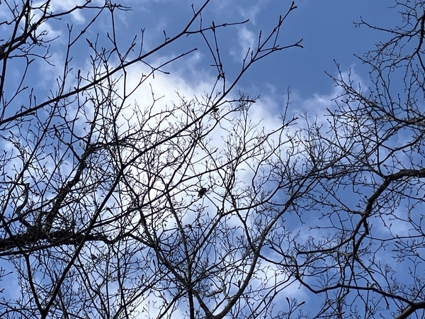 でも私は、戻るときに鳴き声に誘われて空を見上げると、数羽の群れを見つけたんだよね。残念ながら望遠ではないので誰なのかさっぱりわからないけど、この画像の中に少なくとも3羽収められたわ。