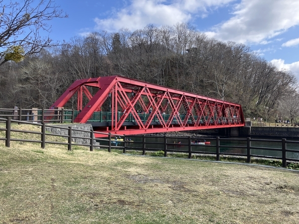 この鉄橋は1899年(明治32年)に空知川に架けられていた英国技術者ボーナル設計の橋梁です。その後、王子製紙が払い下げを受け、大正13年ごろ現在の位置に移設、苫小牧支笏湖間を走らせていた王子軽便鉄道(通称山線)で発電所建設用資材、製紙用原木運搬のほか旅行者にも利用されていました。1951年(昭和26年)の廃線まで道内最古の鉄橋として活躍していたことを記念し、1997年(平成9年)に再生されています。