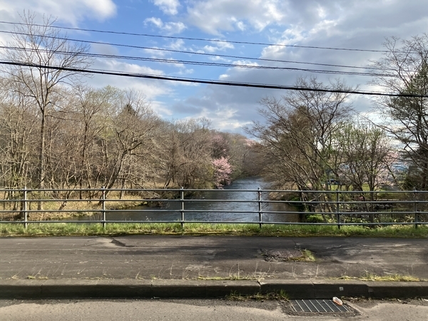 ゴールデンウィーク、道路沿いにはまだ桜が残っています。