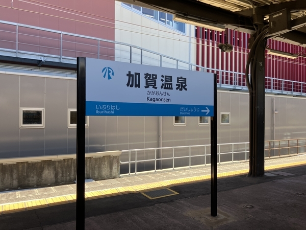 小松空港から加賀温泉駅まで電車で移動します。1時間に1-2本しかないので注意が必要です。