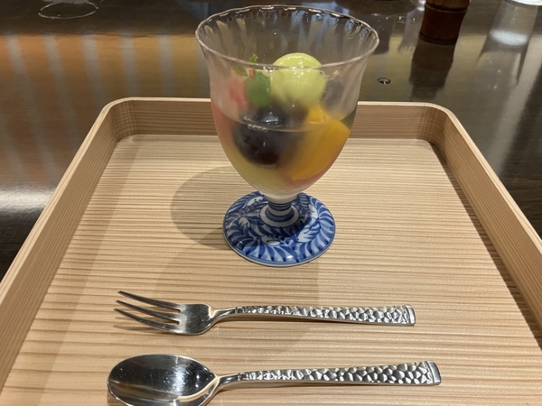 こちらもまた違った九谷焼の器。メロン、スイカ、アップルマンゴー、巨峰が入っていました。