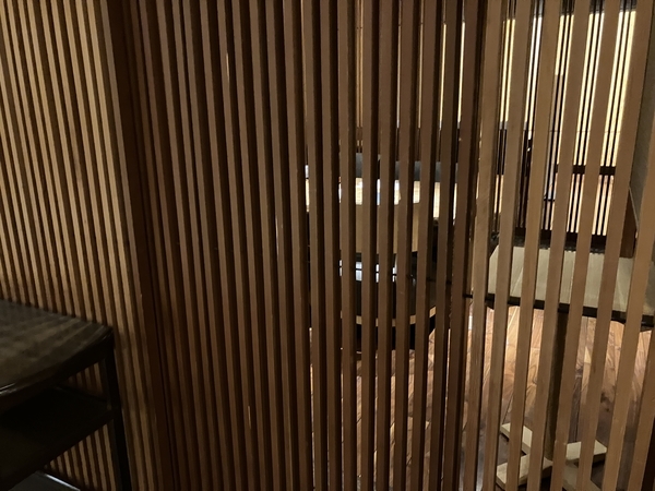 隣とはスクリーンで隔てられていて、顔まではわからないという距離感。緩やかに気配を感じる程度です。お隣はテーブル上に料理の用意がありますが、私たちのテーブルは折敷のみ。