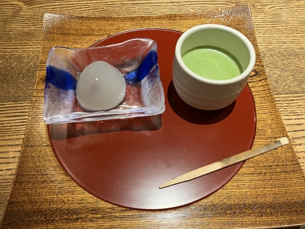 デザート 水饅頭 宇治抹茶。水饅頭はともかく、宇治抹茶がとても美味しかったです。茶道の心得などゼロですが、ふっくらしているというか、うーん、上手に淹れてるなと素人目に感じました。これなら、4階ロビーの茶房を利用するのもおススメできると思います。