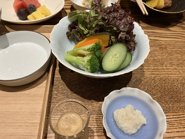 スムージーは前日と同じです。香の物は取り分けるように2人分置いてあります。